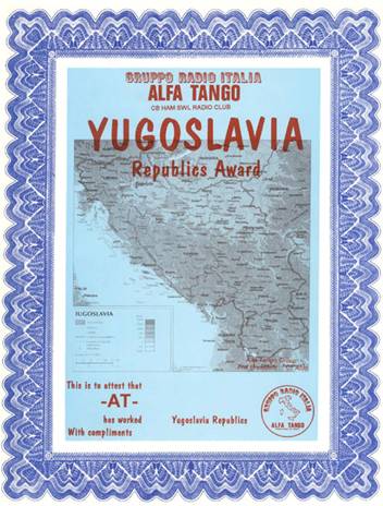 AWARD N. 60 Ex Yugoslavia Republics < n° 6 Republics + n° 2 Provinces >